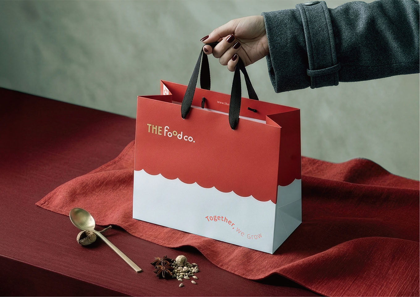 ⟡品牌英文名: 重新定義及聚焦英文名稱「THE food co.」THE象徵標竿與唯一,food co.則明確傳達其為食材為核心的企業,名稱突顯同興作為可信賴的國際級食材選配專家定位。